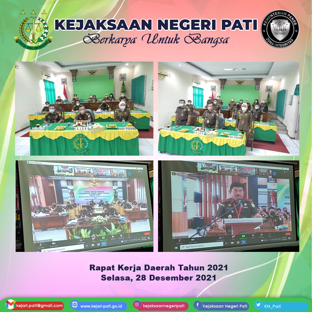 Pada hari ini Jumat, 24 Desember 2021 Kepala Kejakaan Negeri Pati (Bapak Mahmudi, S.H., M.H) bersama dengan Kepala Sub Bagian Pembinaan dan Kepala Seksi Bidang mengikuti sosialisasi pra rapat kerja daerah tahun 2021 dengan metode baru.
