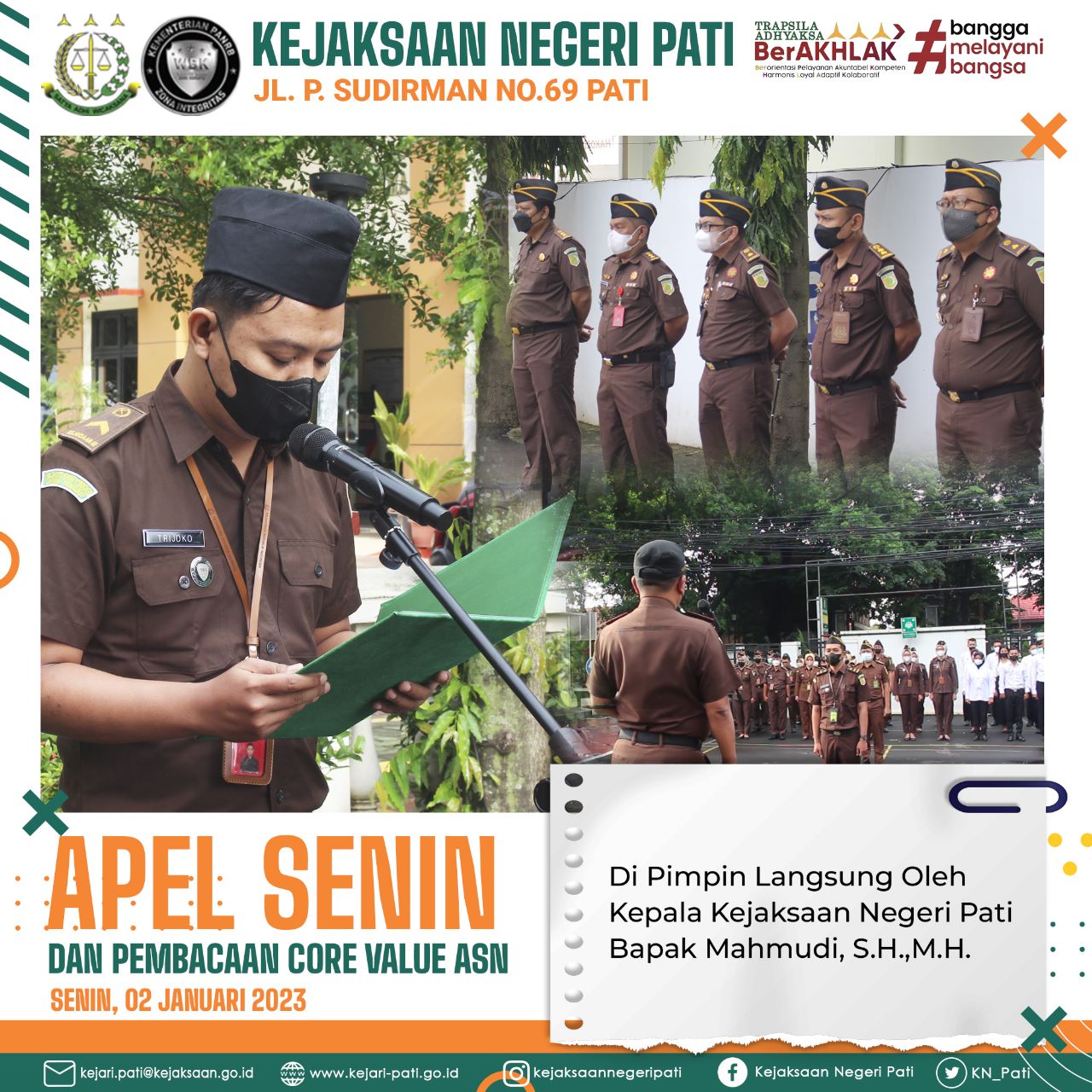 Apel senin pada KejaksaanNegeri Pati di pimpin langsung oleh Kepala Kejaksaan Negeri Pati Bapak Mahmudi, S.H., M.H.