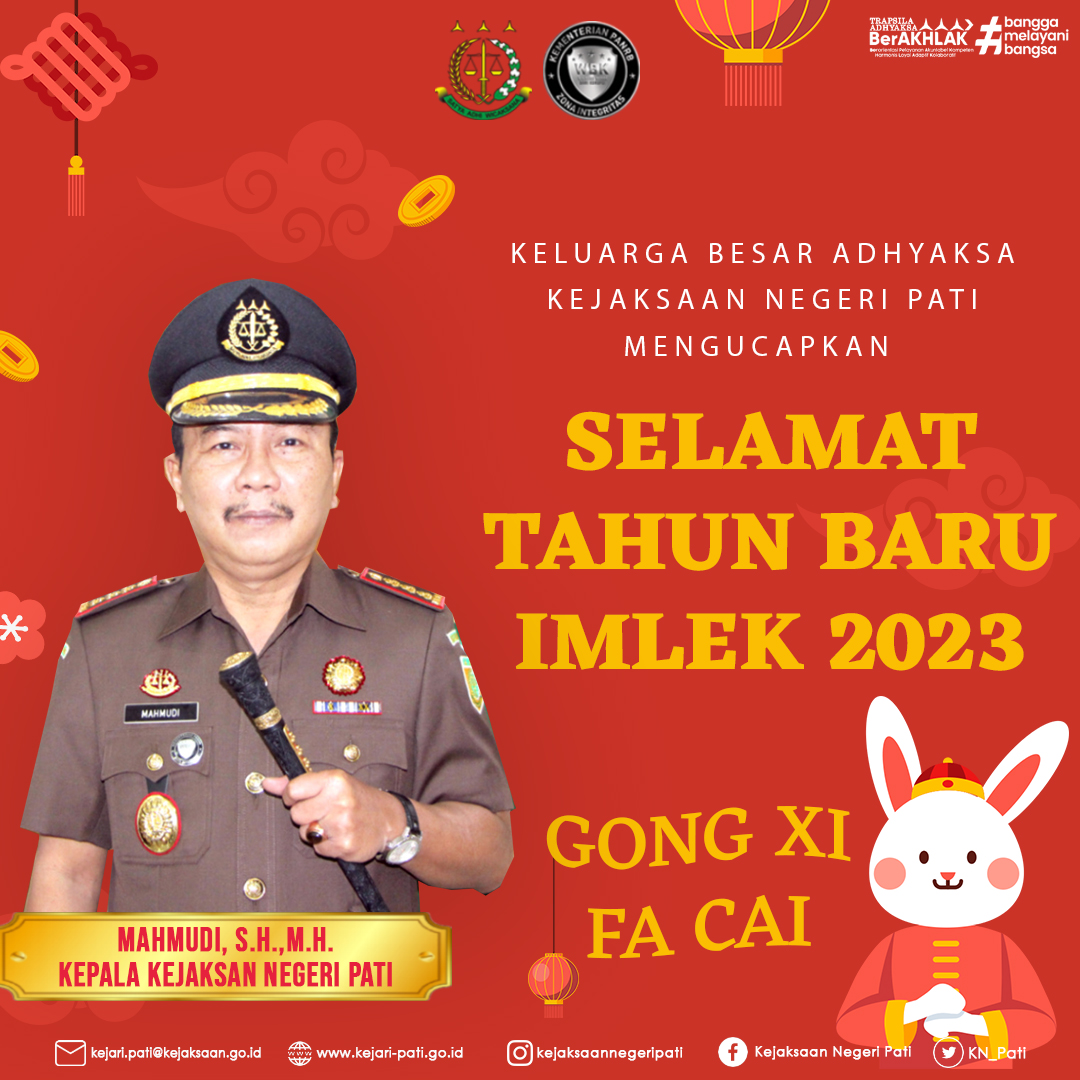 Keluarga besar ADHYAKSA KEJAKSAAN NEGERI PATI mengucapkan selamat tahun baru imlek 2023