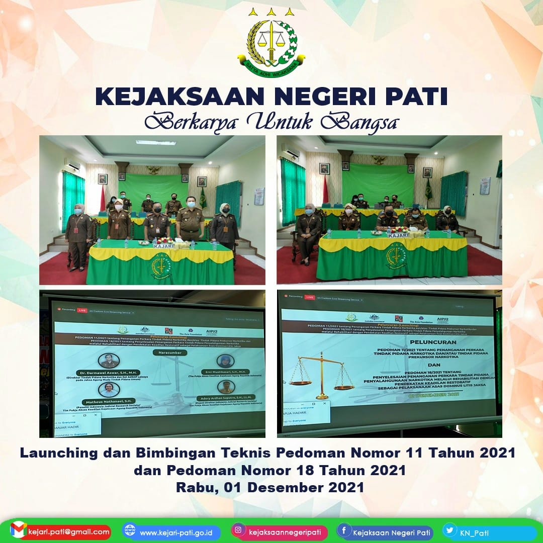 PATI - Pada hari ini Rabu tanggal 1 Desember 2021, Kepala Kejaksaan Negeri Pati Bapak Mahmudi,S.H., M.H. , Kasi Tindak Pidana Umum beserta Jaksa Tindak Pidana Umum melaksanakan vicon di AULA Kejaksaan Negeri Pati melalui zoom, Launching dan Bimbingan Teknis Pedoman Nomor 11 Tahun 2021 dan Pedoman Nomor 18 Tahun 2021