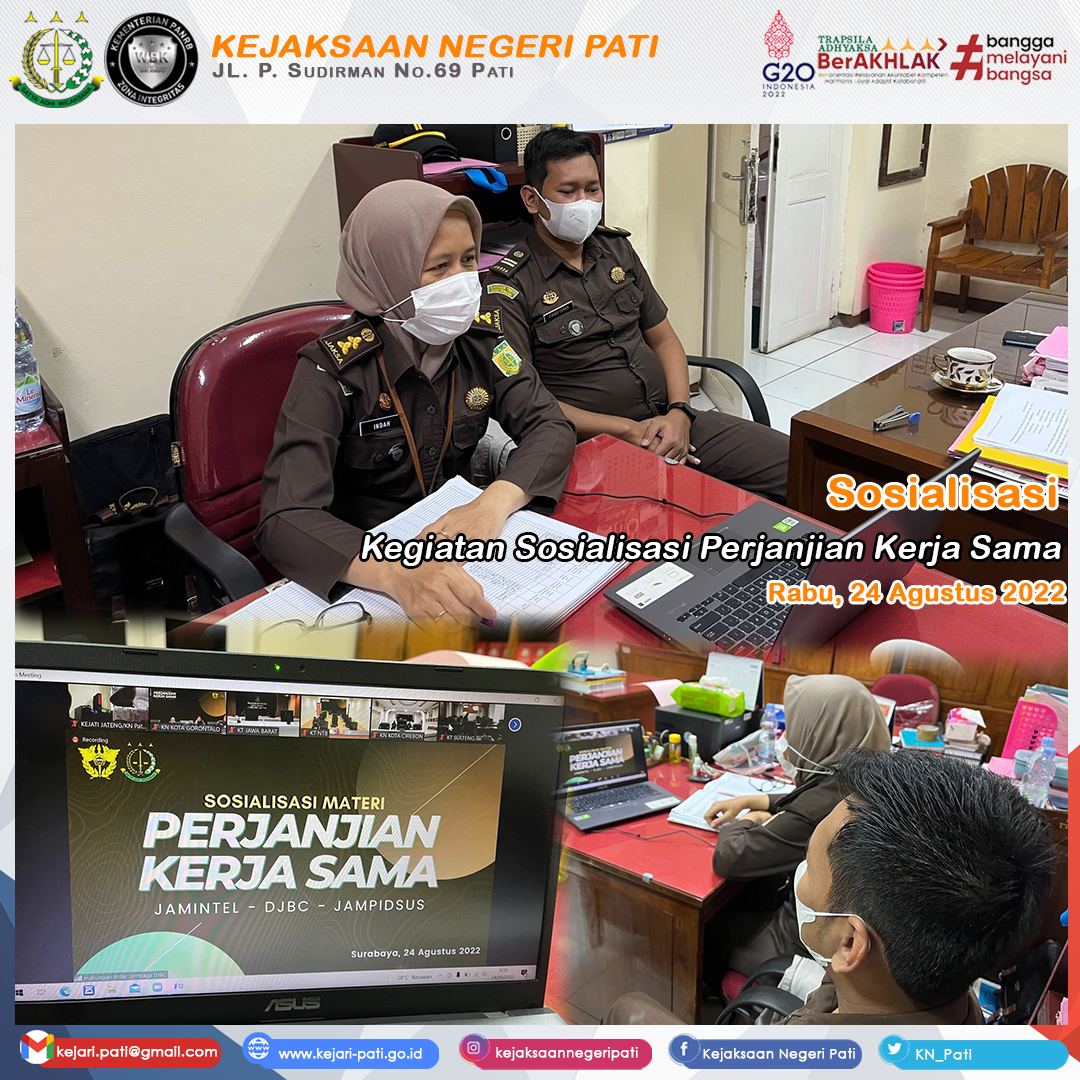 Halo Sobat Adhyaksa, Pada hari Rabu, 24 Agustus 2022 Kepala Sub Seksi Penyidikan Pada Bidang Pidsus Bapak Fandi Isnan, S.H. berserta Jaksa Fungsional Ibu Indah Kurnianingsih, S.H., M.H. Mengikuti kegiatan Sosialisasi Materi Perjanjian Kerja Sama (PKS) antara Direktorat Jendral Bea dan Cukai (DJBC) dan Jaksa Agung Muda Tindak Pidana Khusus tentang Penegakan Hukum terhadap Tindak Pidana di Bidang Kepabeanan yang di laksanakan Virtual Via Zoom Meeting