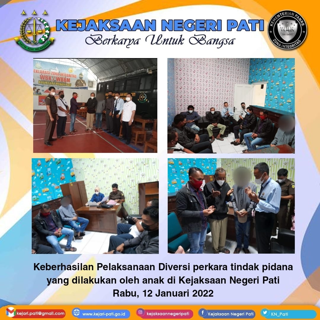Pati- pada hari Rabu, 12 Januari 2022 Kejaksaan Negeri Pati telah berhasil melaksanakan Diversi perkara tindak pidana yang dilakukan oleh anak.