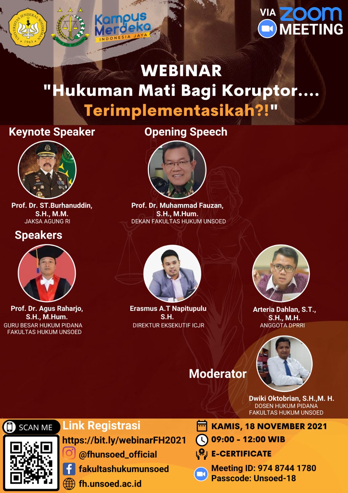 Pada hari ini, Kepala Kejaksaan Negeri Pati (Bapak Mahmudi, S.H., M.H.) bersama Kepala Seksi Tindak Pidana Khusus (Bapak Herry Setiawan, S.H., M.H.) dan Jaksa Fungsional mengikuti webinar "Hukuman Mati Bagi Koruptor... Terimplementasikah?!". Webinar dimulai pada jam 09.00 WIB melalui Zoom Meeting yang bertempat di Aula Kejaksaan Negeri Pati.